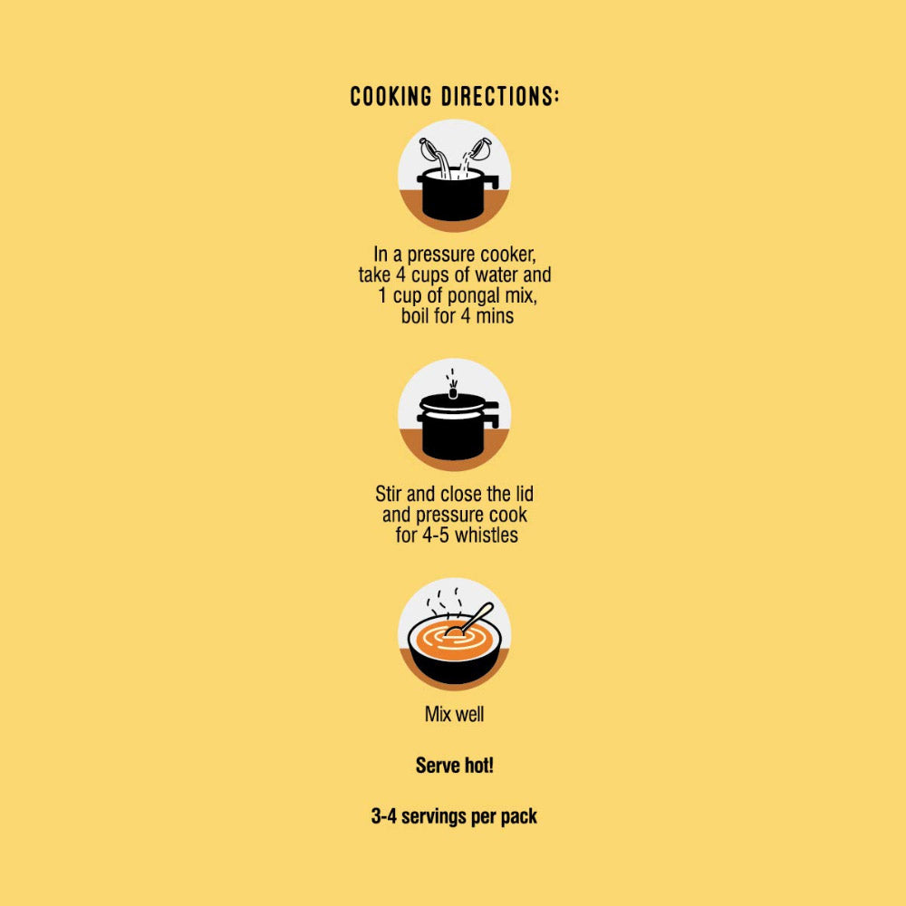 To make awesome Pongal, simply add water to mix and pressure cook.